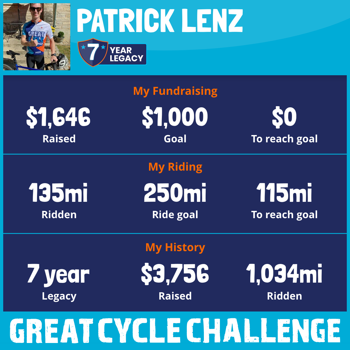 This September, I am taking part in the Great Cycle Challenge to fight kids' cancer! Kids should be living life, not fighting for it. Please consider supporting the cause by making a donation to give these kids the brighter futures they deserve. Thank you!