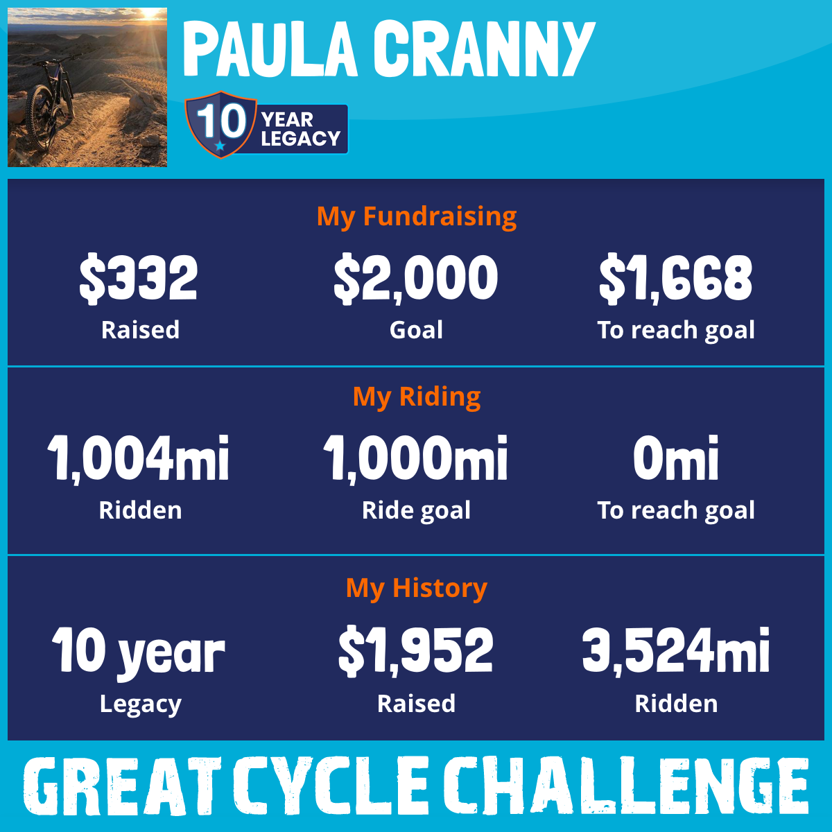 1,004 mi Ridden$332 Raised2025