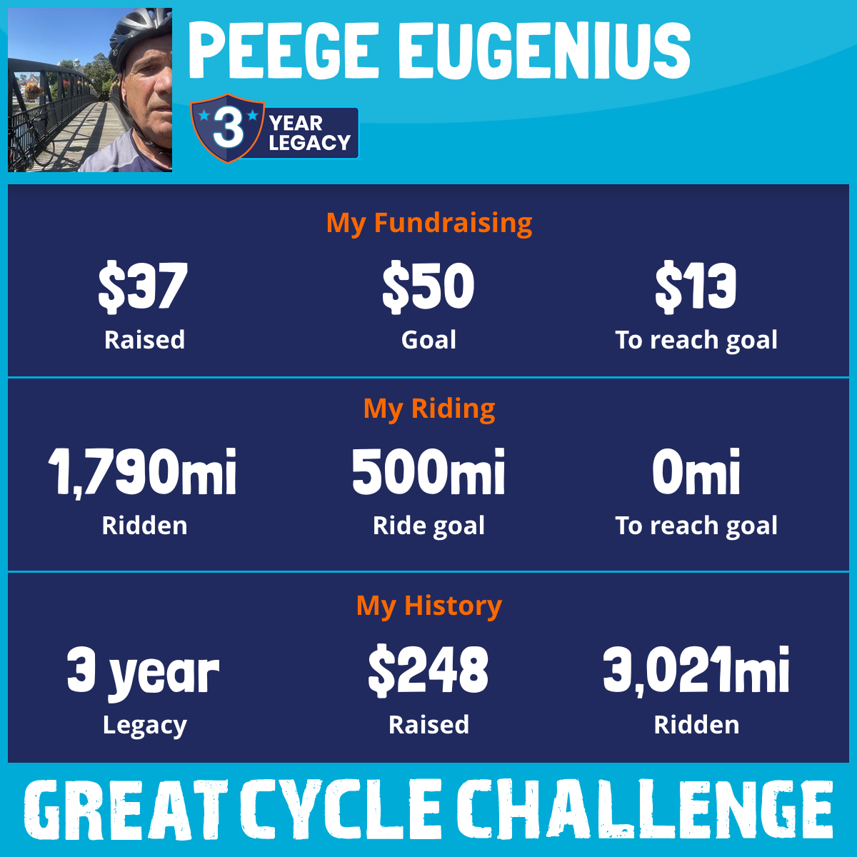 2,100 mi Ridden$37 Raised2025