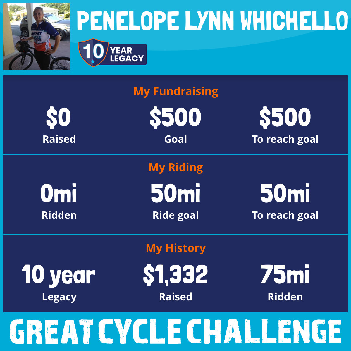 I'm personally riding in honor of my father Douglas A. whichello who valiantly fought back Cancer for 11 years. A Navy Veteran and hard working Business Owner he left a legacy of grand persistence. And my sister Cindy Lee Morley and his grand-daughters Caitlyn & Cheriden. Simply We miss him!