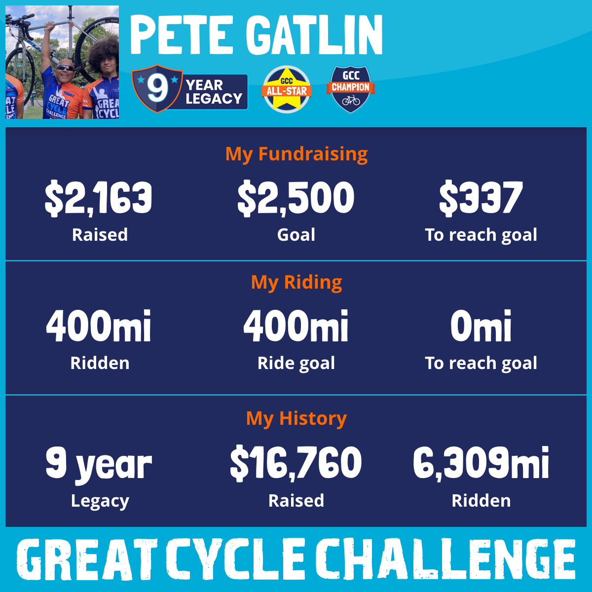 400 mi Ridden$2,163 Raised2025
