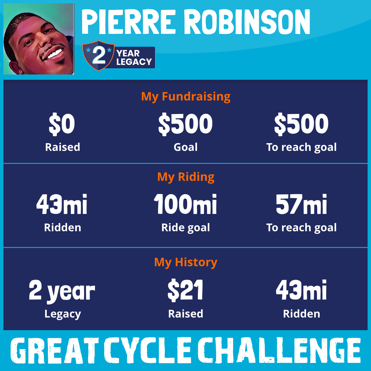 I am riding 100 mi in memory of Herbert C Robinson. Please sponsor me and support my challenge to fight kids' cancer and save little lives.
