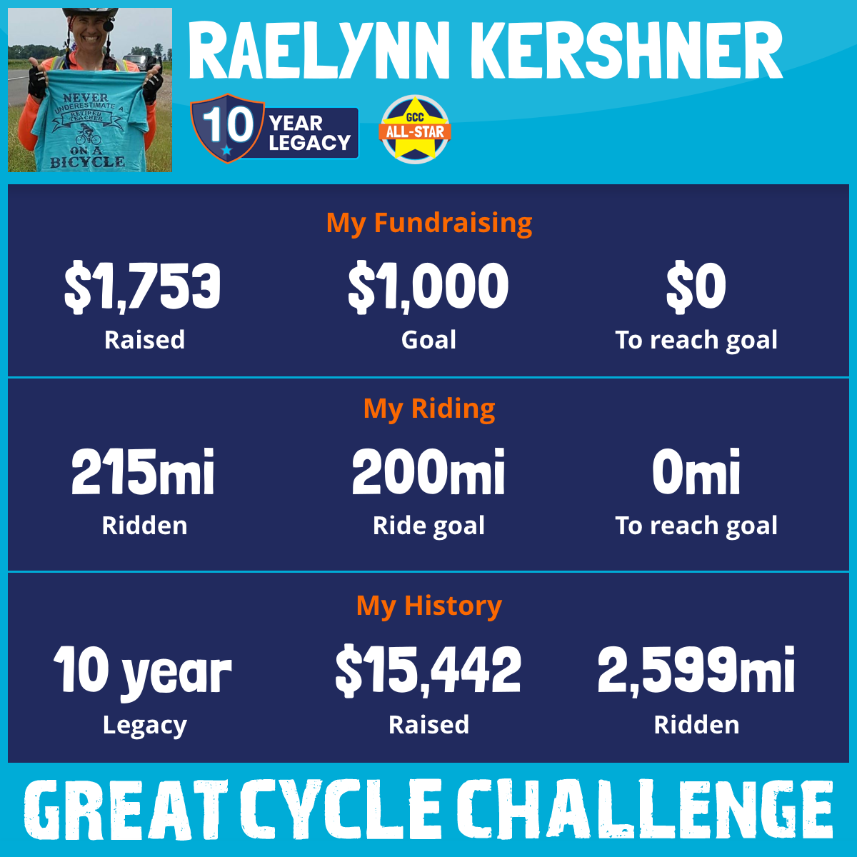 This cycling challenge supports Children's Cancer Research Fund to allow them to continue their work to develop lifesaving treatments and find a cure for childhood cancer. I would be honored if you choose to make a donation to give these kids the brighter futures they deserve.
