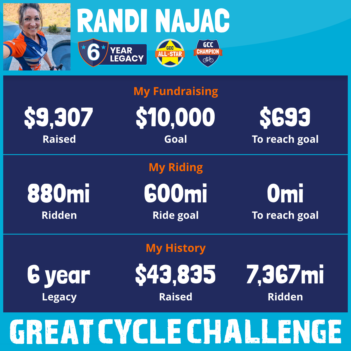 880 mi Ridden$9,307 Raised2025