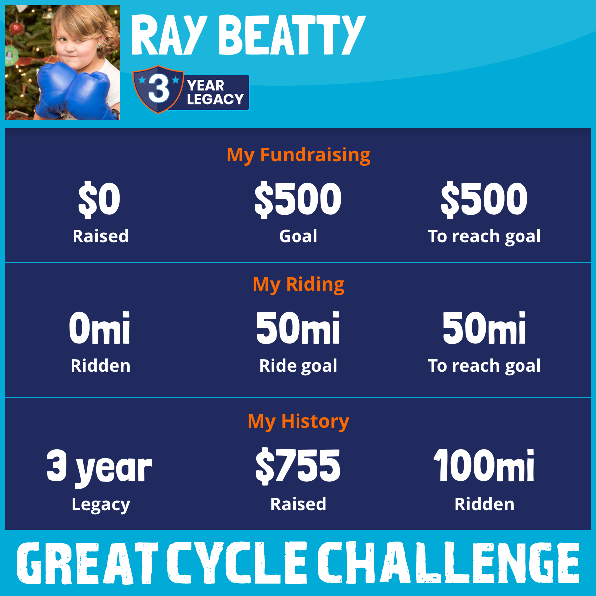 I am riding 50 mi to fight kids' cancer and save little lives. Please sponsor me to support my challenge!