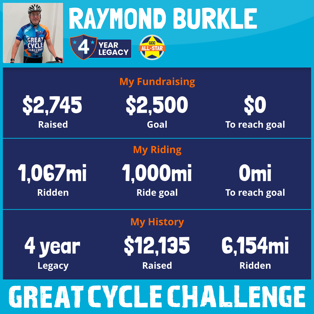 1,067 mi Ridden$2,745 Raised2025