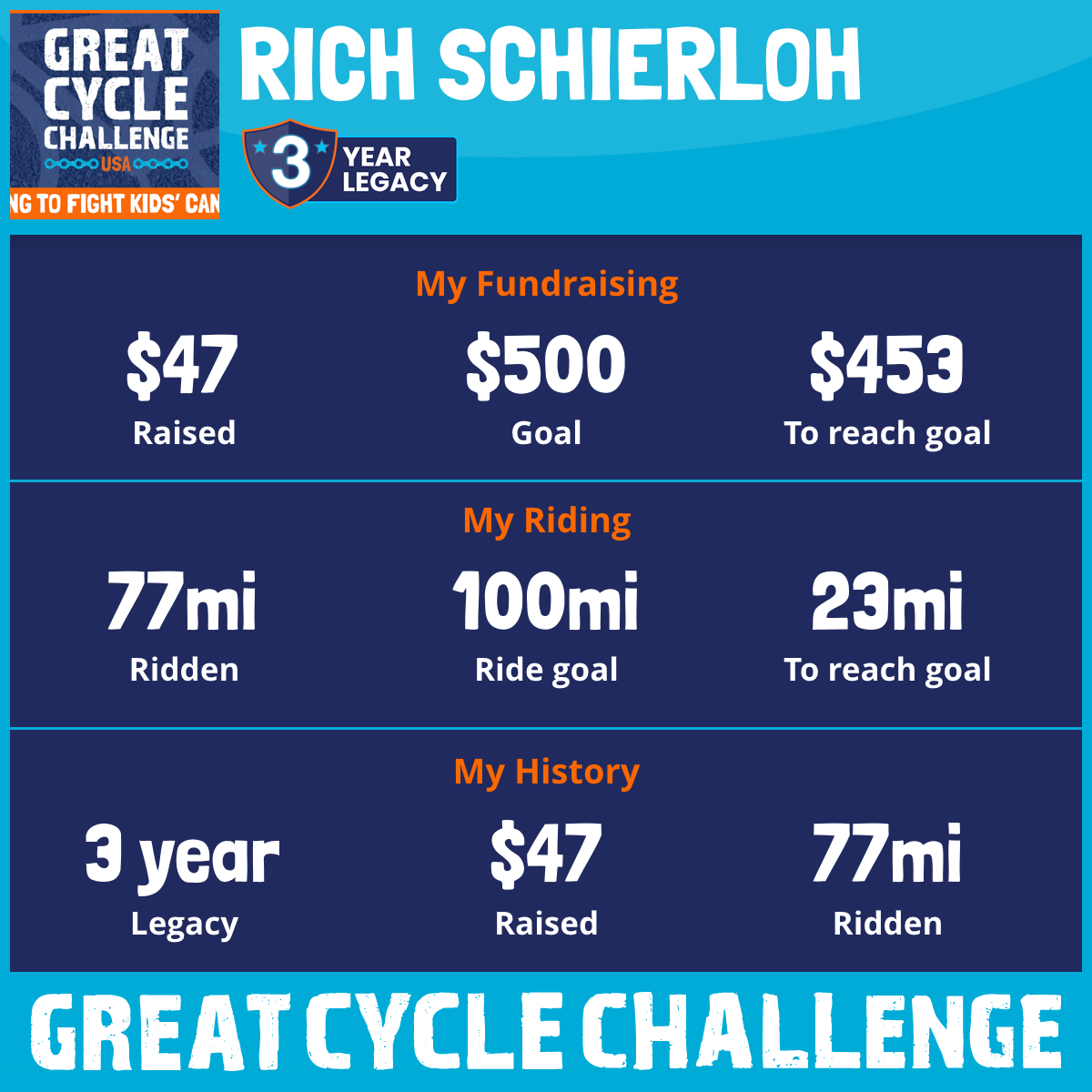 I am riding 100 mi to fight kids' cancer and save little lives. Please sponsor me to support my challenge!