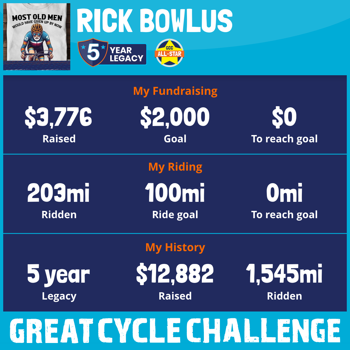 So, I am raising funds through my challenge to help these kids and support Children's Cancer Research Fund to allow them to continue their work to develop lifesaving treatments and find a cure for childhood cancer. Let's see what this almost 77-year-old guy can pull off this year - especially with your wonderful, generous support.