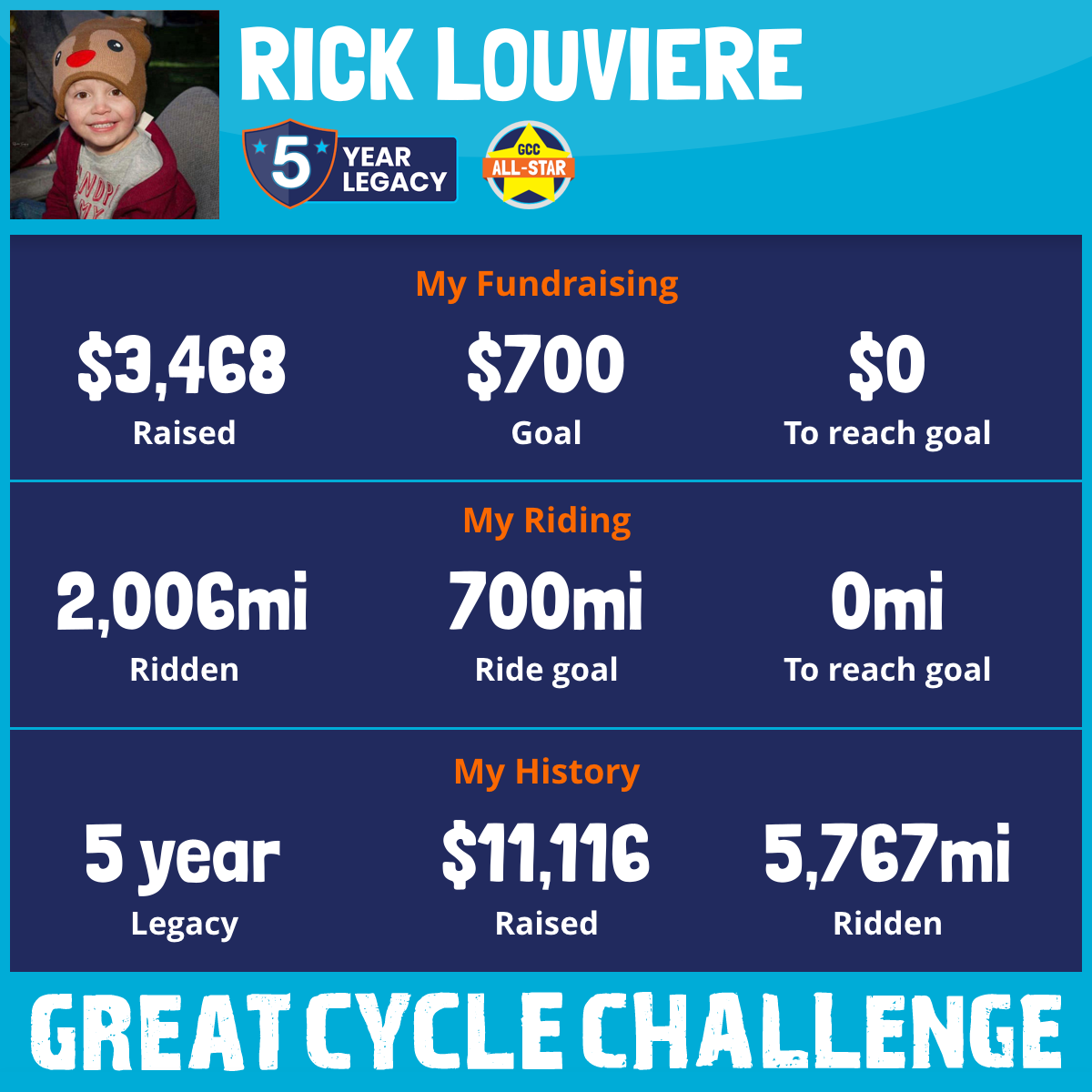 Participating in this event is very personal to me. Over 8 years ago, I lost my amazing two-year-old grandson, Brady Louviere, to Childhood Leukemia. It's a shame that there isn't more funds specifically dedicated to children's cancer. Brady had to take adult chemo therapy treatments and that is what ultimately took his life. It was heartbreaking to see the toll it took on his little body (and his family) before he passed.