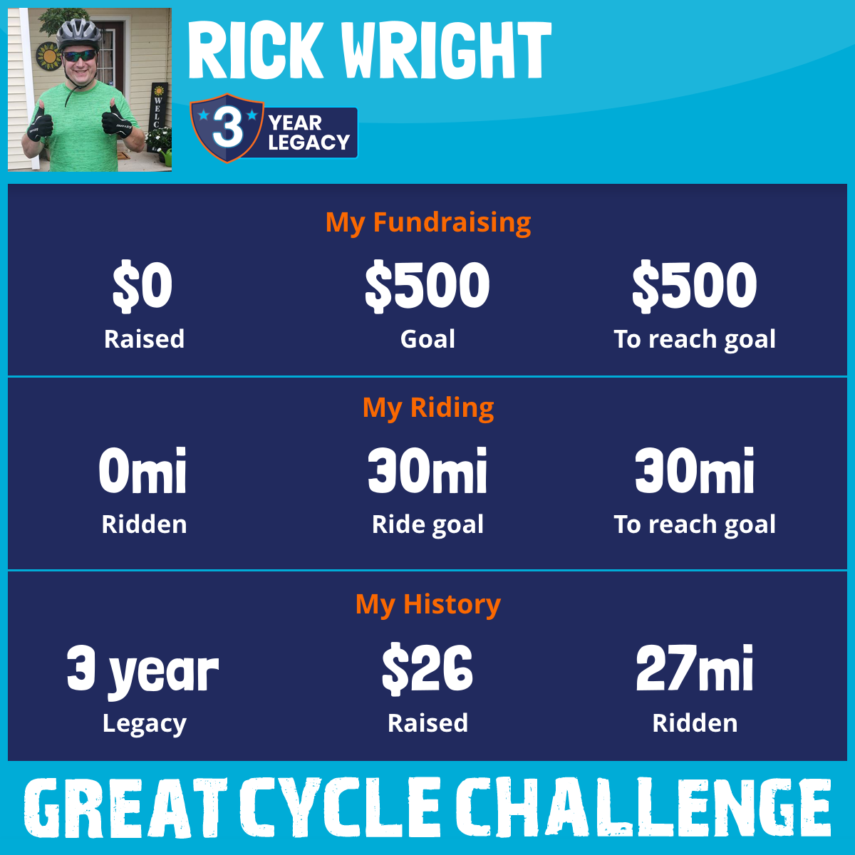 I am riding 30 mi in memory of my dad, Richard J Wright. Please sponsor me and support my challenge to fight kids' cancer and save little lives.