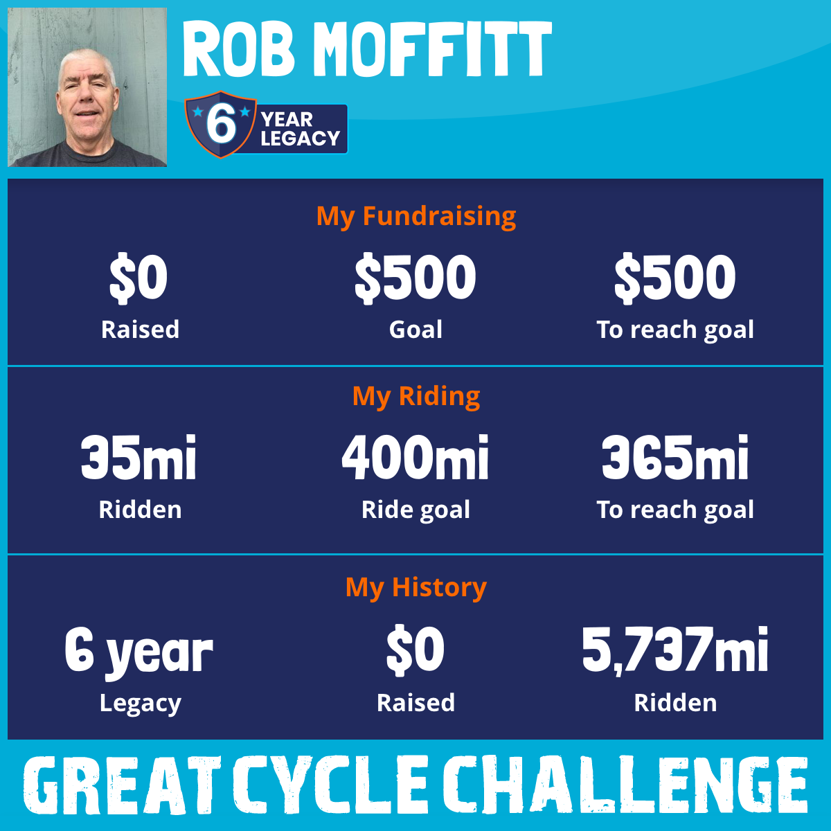 I am riding 400 mi in memory of my cousin, Pete Moffitt. Please sponsor me and support my challenge to fight kids' cancer and save little lives.