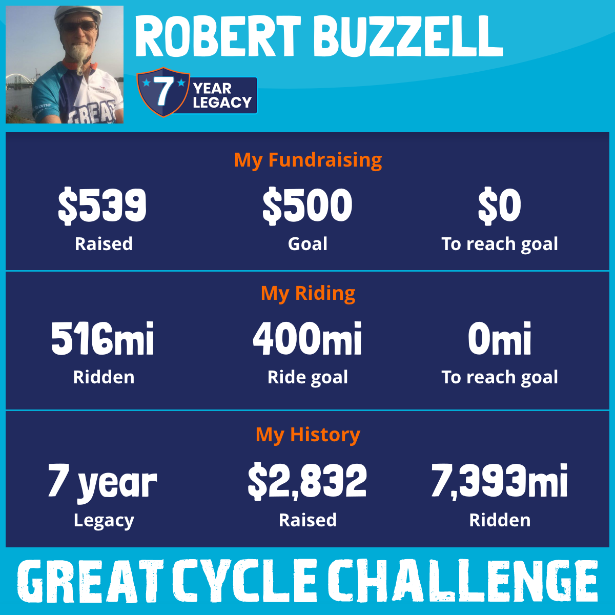 I am riding 400 mi for robert buzzell. Please sponsor me and support my challenge to fight kids' cancer and save little lives.