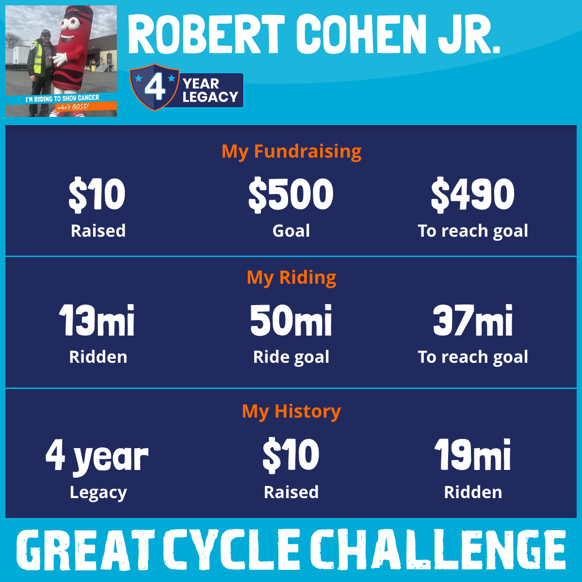 I've raised $10 My goal is $500 Donate Now