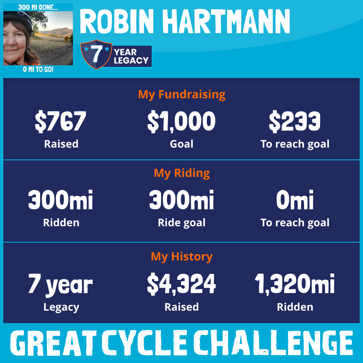 This September, I am once again taking part in the Great Cycle Challenge to fight kids' cancer! I feel blessed that in May 2021, I had both of my hips replaced and I am able to participate in this bike challenge to help others and ride with such comfort. It is a sign of what the medical community can do to help people, and these kids deserve to be helped. My mother, Joyce, overcame cancer with help from the medical community, too.