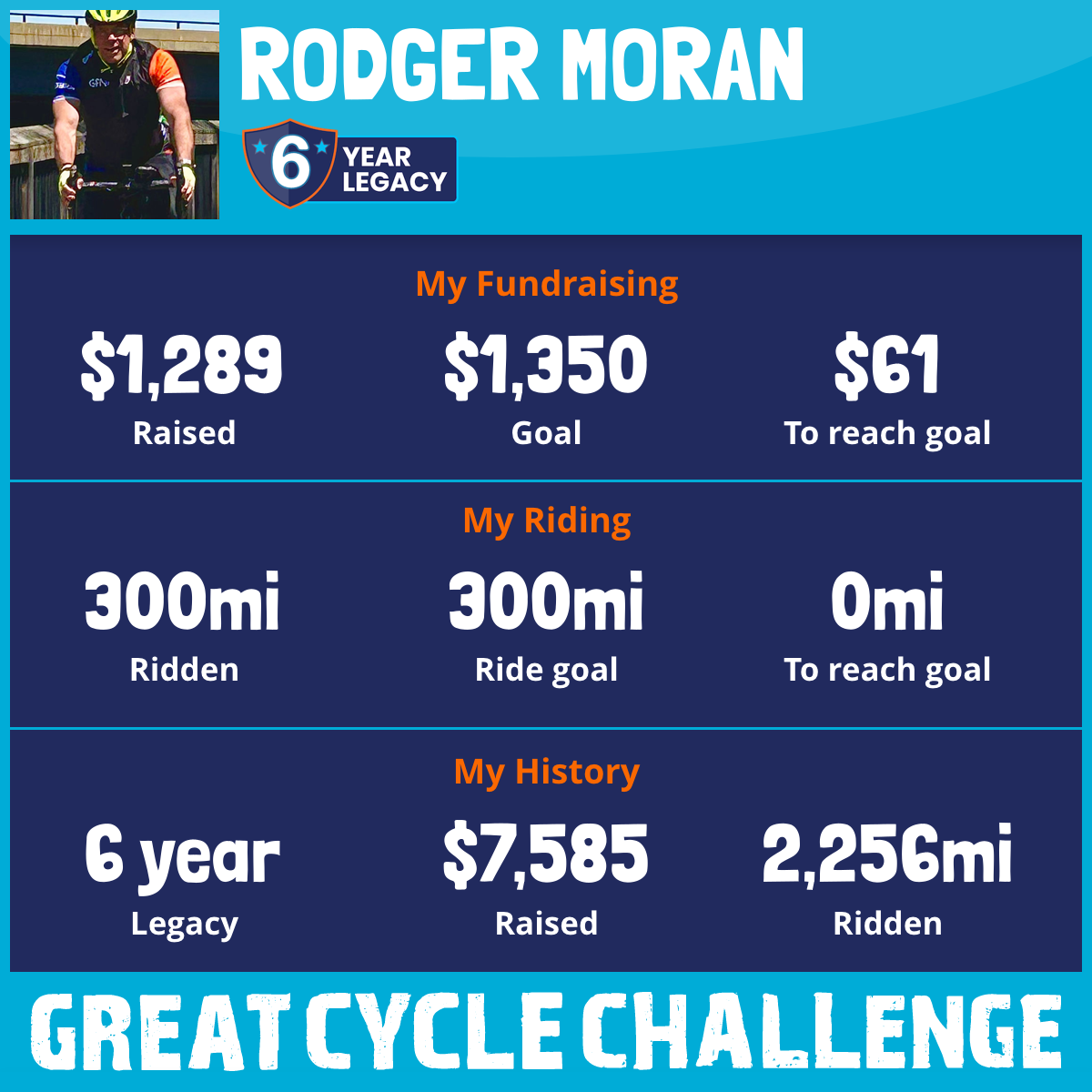 300 mi Ridden$1,289 Raised2025