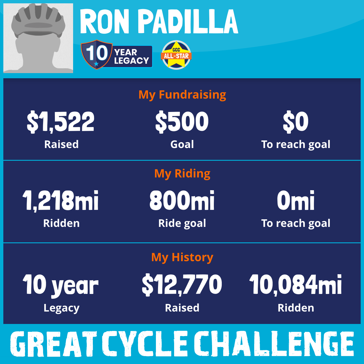 I am riding 800 mi to fight kids' cancer and save little lives. Please sponsor me to support my challenge!