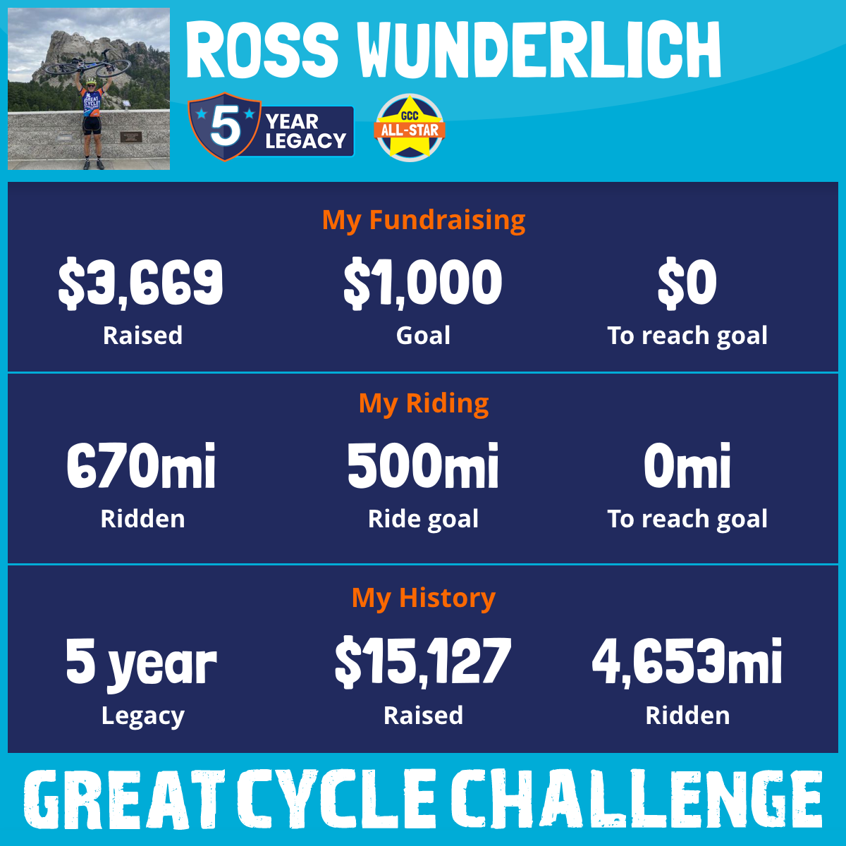 670 mi Ridden$3,669 Raised2025