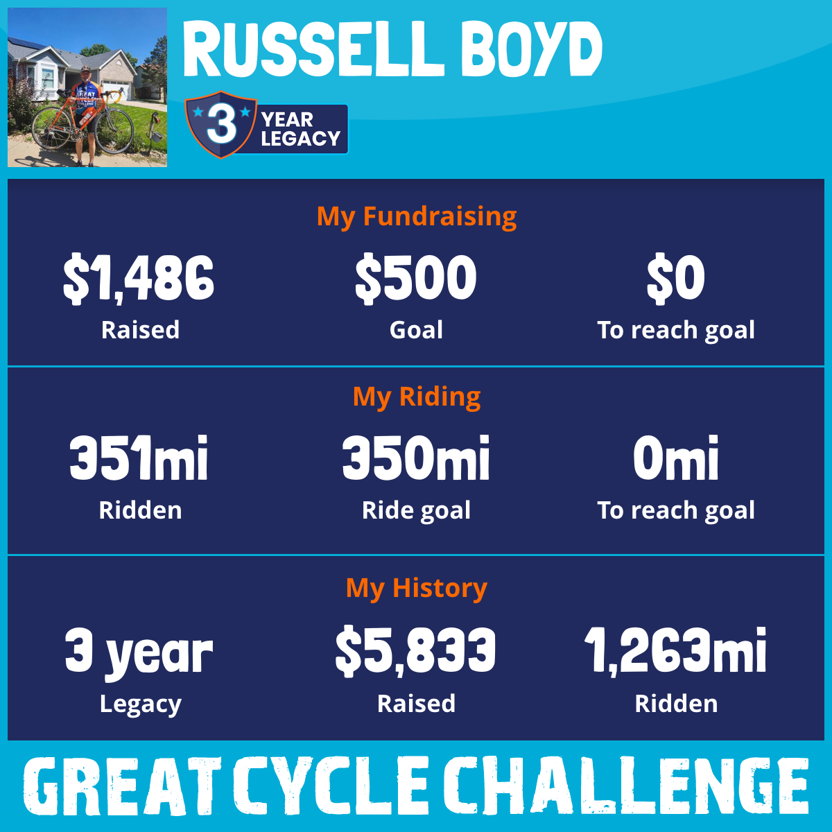 My love to you all for your support. I am humbled by the support as I ride for these kids.