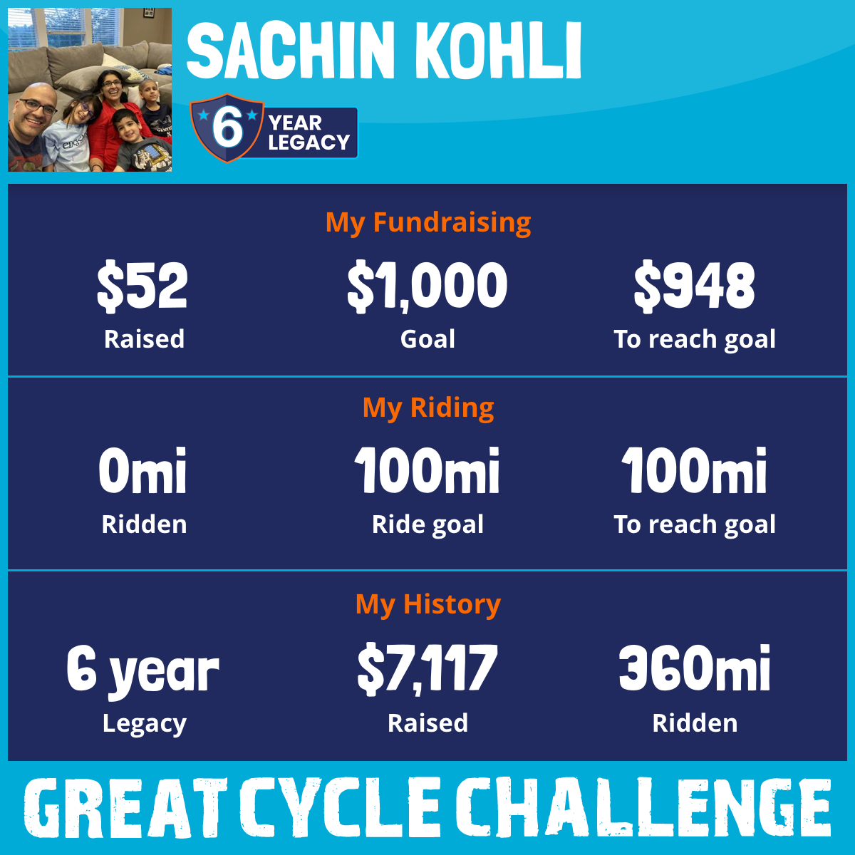 I am riding 100 mi for Aditya Kohli. Please sponsor me and support my challenge to fight kids' cancer and save little lives.
