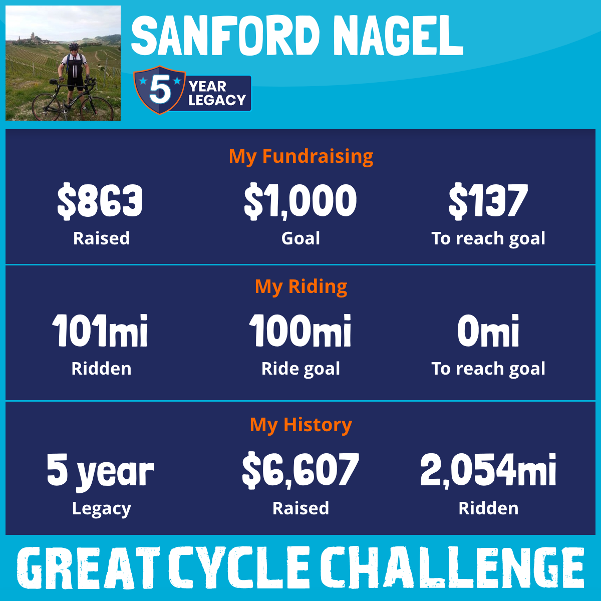 276 mi Ridden$2,215 Raised2021