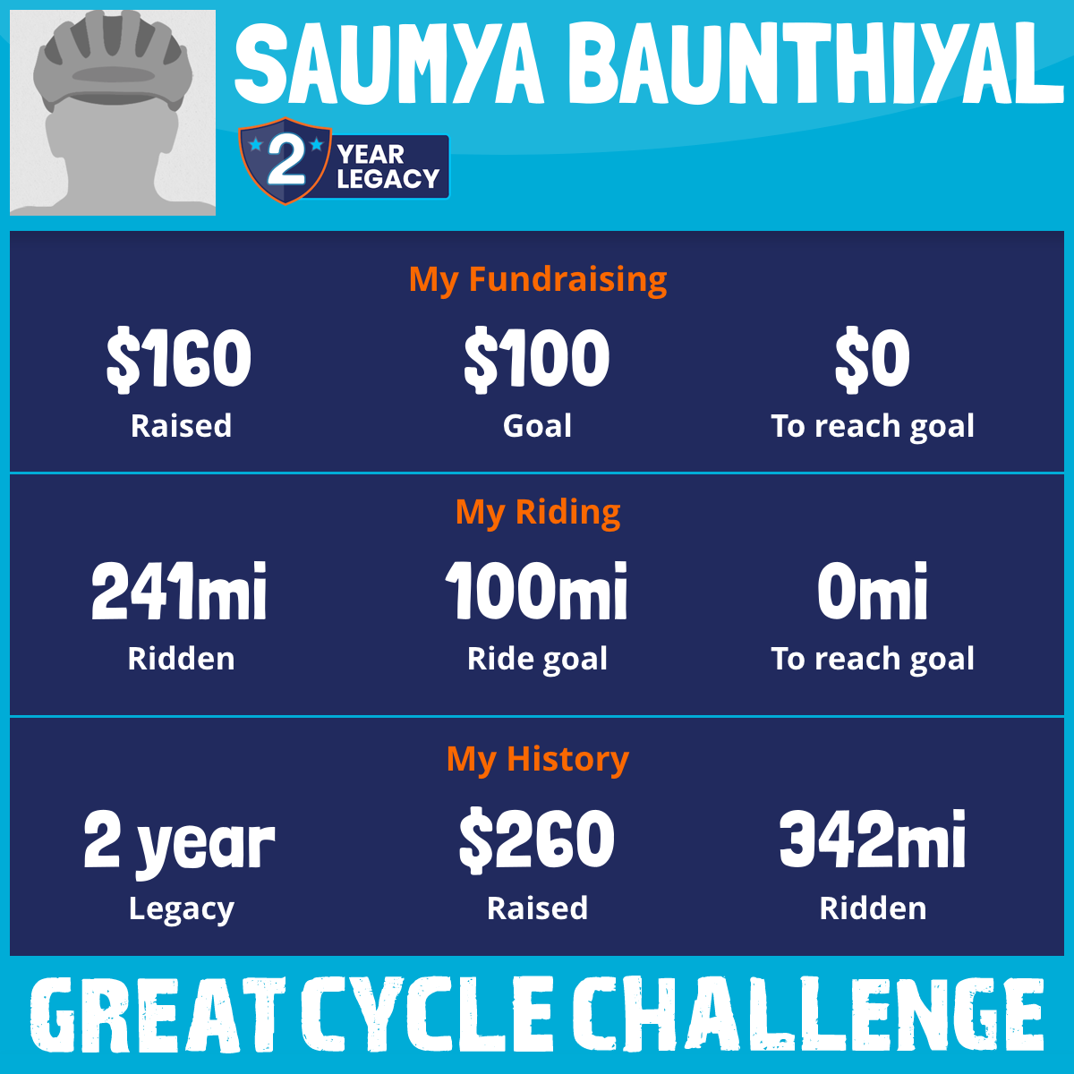I am riding 100 mi to fight kids' cancer and save little lives. Please sponsor me to support my challenge!