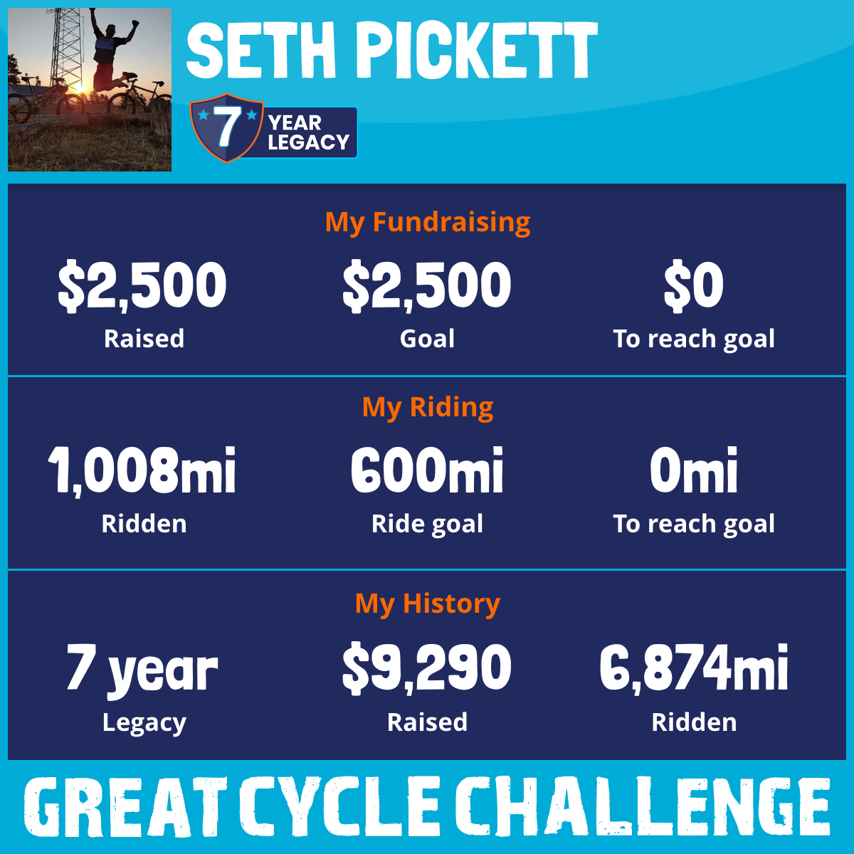 1,008 mi Ridden$2,500 Raised2025