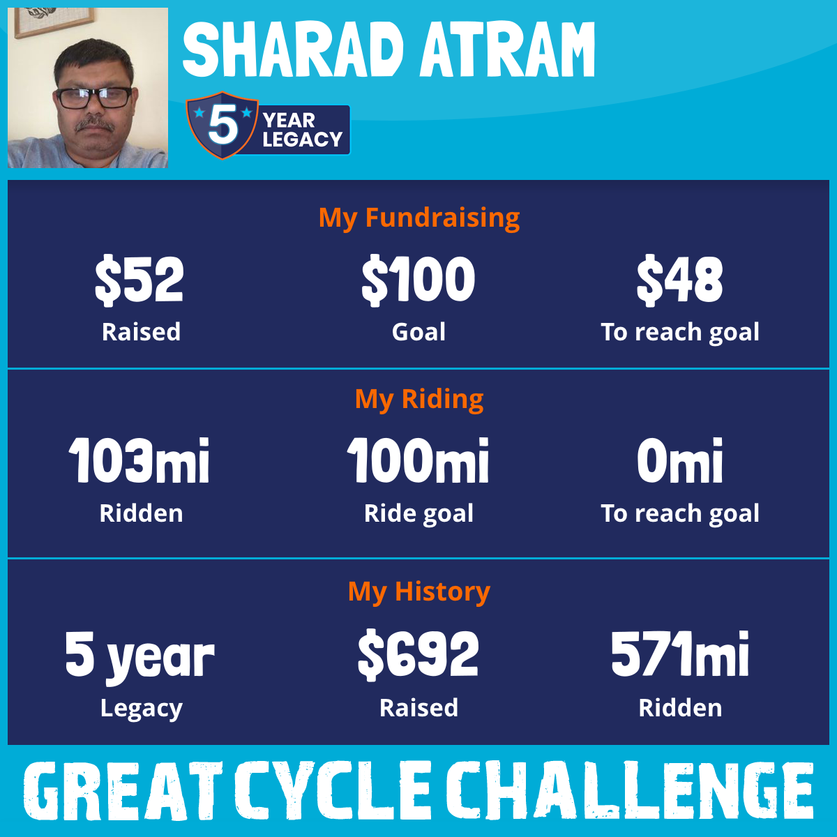 I am riding 100 mi in memory of Aai. Please sponsor me and support my challenge to fight kids' cancer and save little lives.