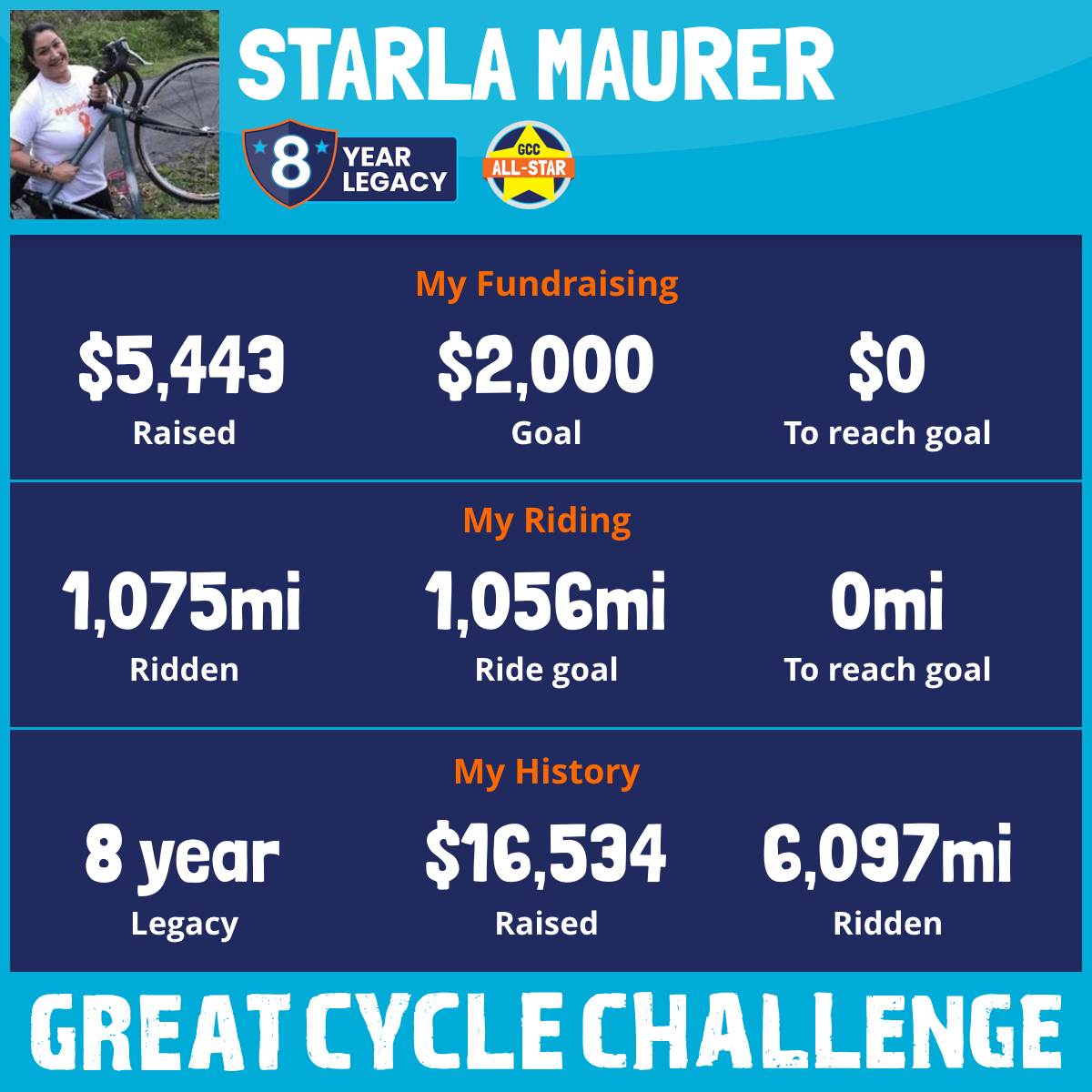 1,075 mi Ridden$5,443 Raised2025