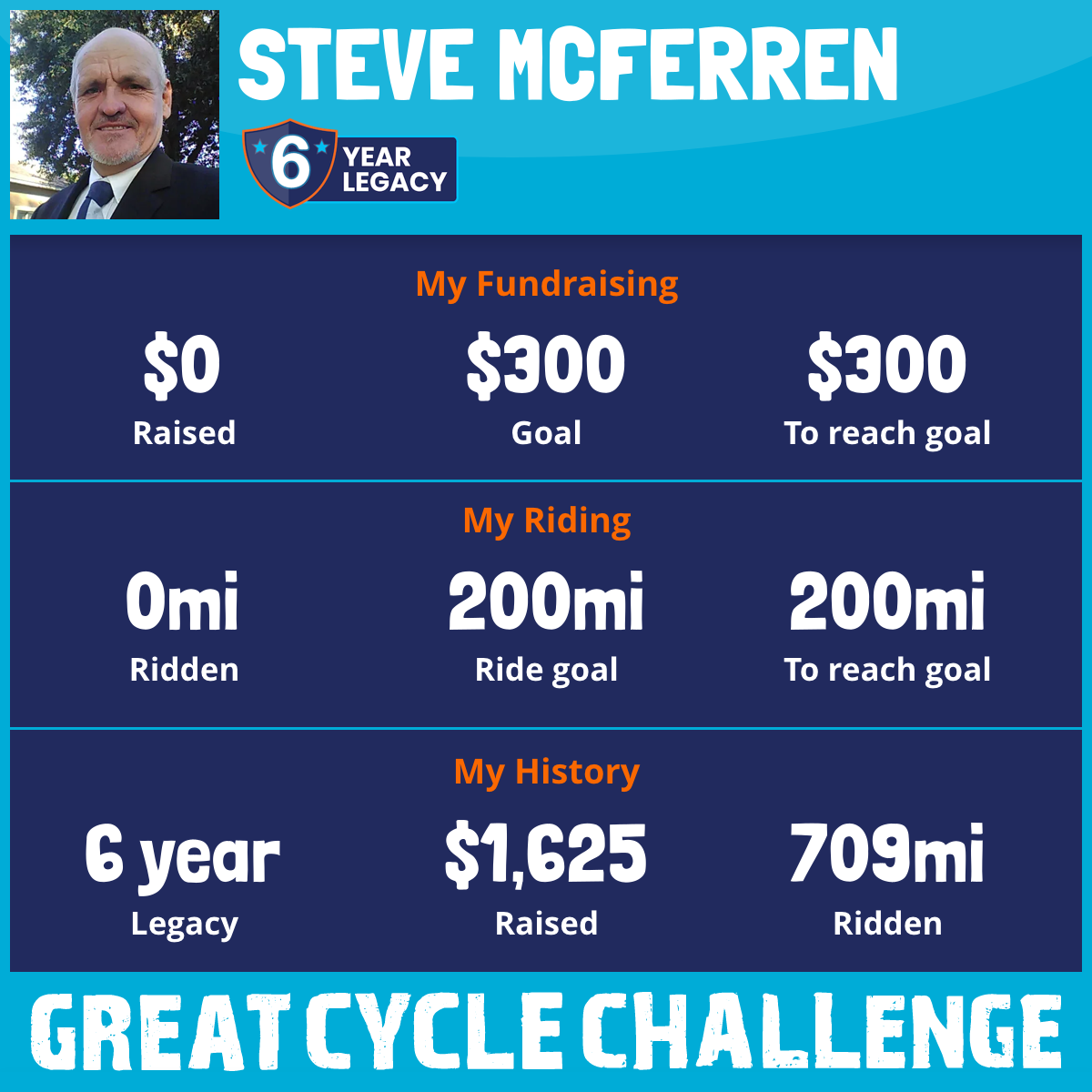 I've raised $0 My goal is $300 Donate Now