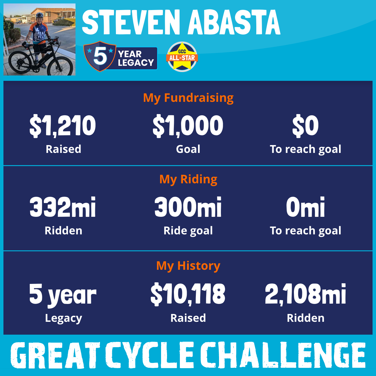 332 mi Ridden$1,210 Raised2025