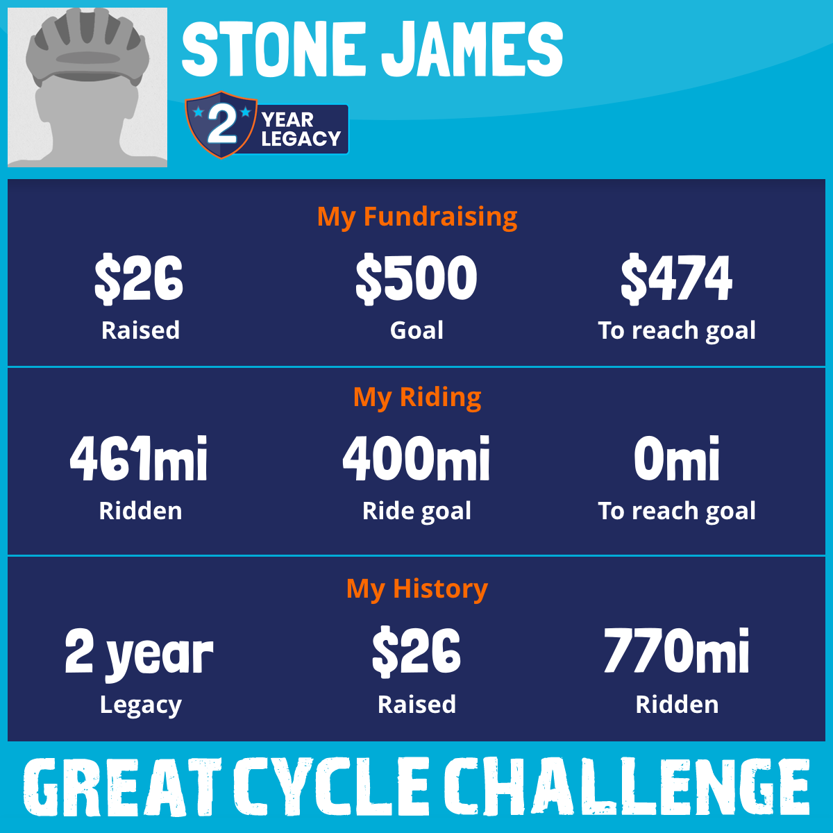 I am riding 400 mi for Vivian. Please sponsor me and support my challenge to fight kids' cancer and save little lives.