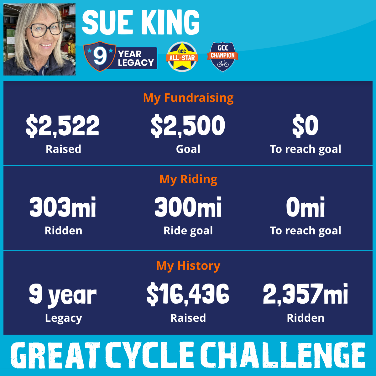 303 mi Ridden$2,522 Raised2025