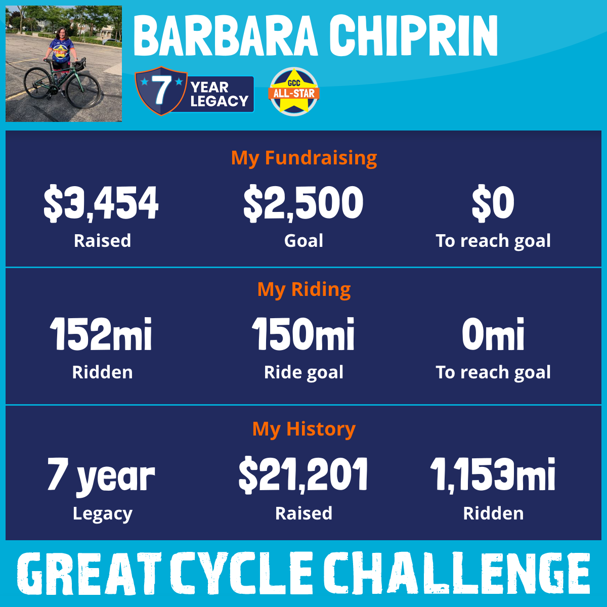 September 2025 will be my seventh year participating in the Great Cycle Challenge to fight kids' cancer!