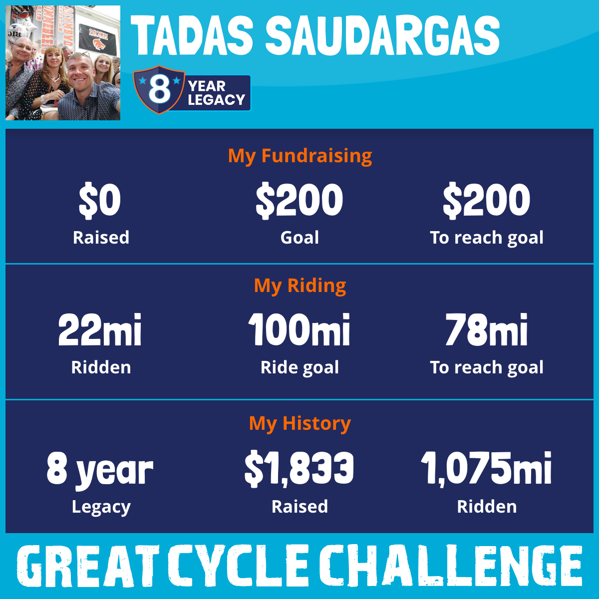 I am riding 100 mi to fight kids' cancer and save little lives. Please sponsor me to support my challenge!