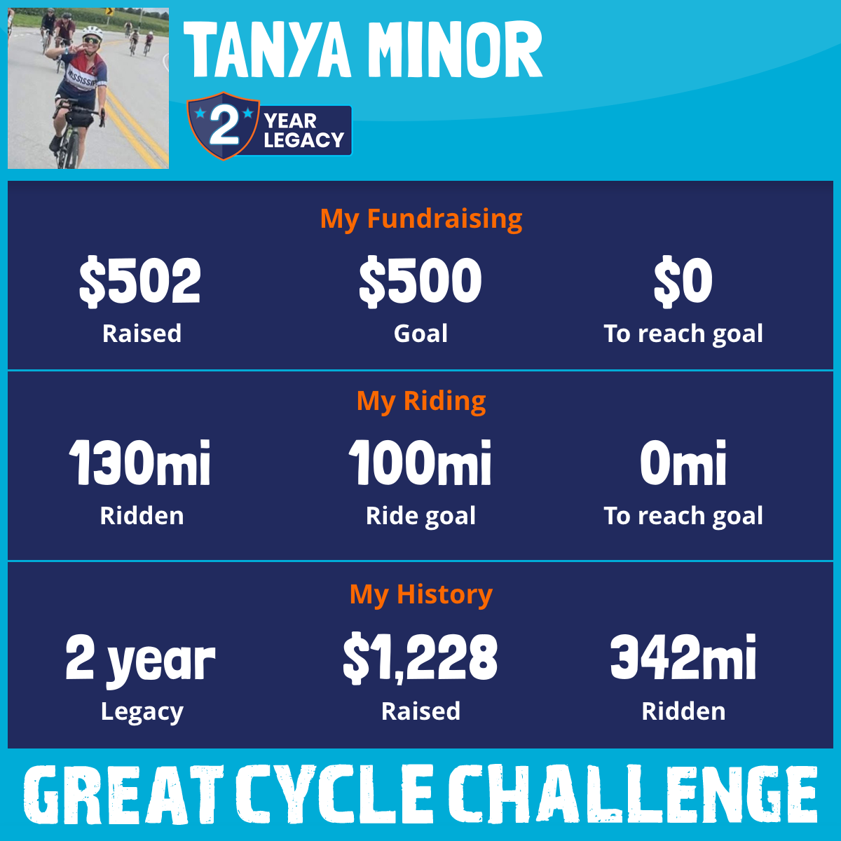 130 mi Ridden$502 Raised2025