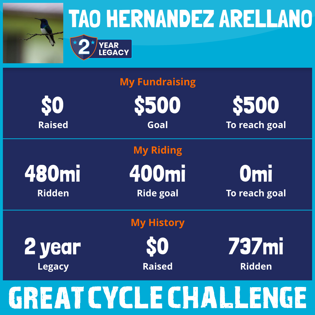 I am riding 400 mi to fight kids' cancer and save little lives. Please sponsor me to support my challenge!