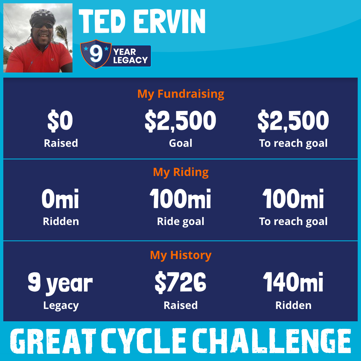 I've raised $0 My goal is $2,500 Donate Now