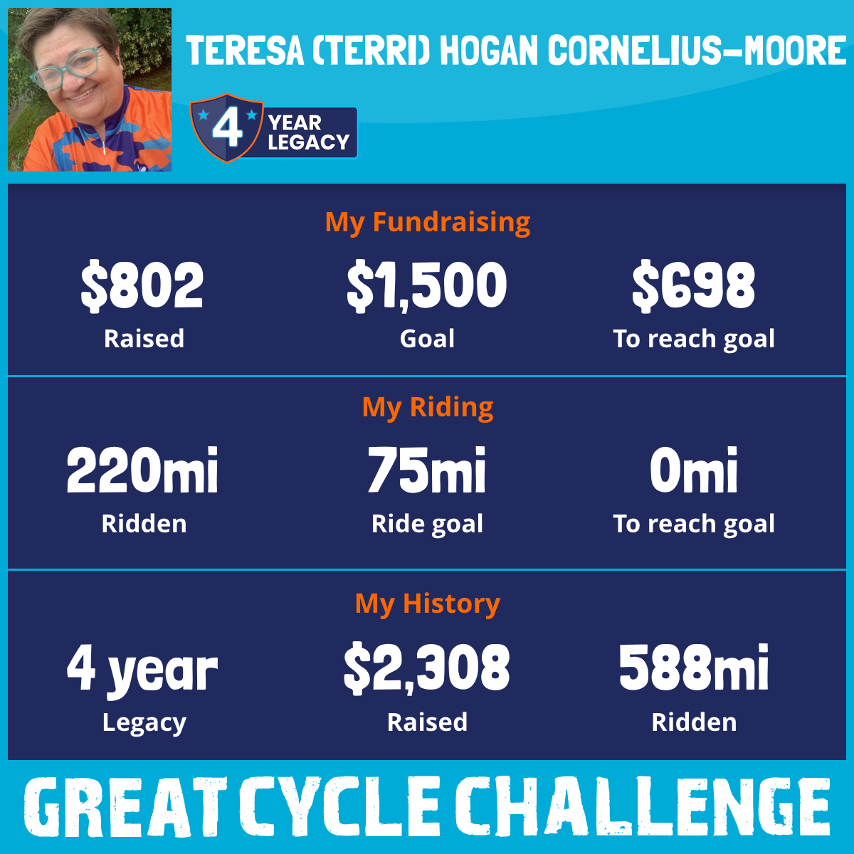 This year I am riding to honor the memory of a child, Elijah Simpson, who fought valianately against pediatric brain cancer. Sadly, he was lost to his family and all who loved him in 2017. Federal funding has been canceled for the Pediatric Brain Tumor Consortium, which is an association of 16 academic centers and children’s hospitals dedicated to trials of novel treatments for pediatric brain cancer. When funds such as these are lacking, we are called as private citizens to pitch in to do what we can. I choose to ride for as long as I can, for as far as I can, to help children such as Elijah win more wars in the future against this monster called Cancer.