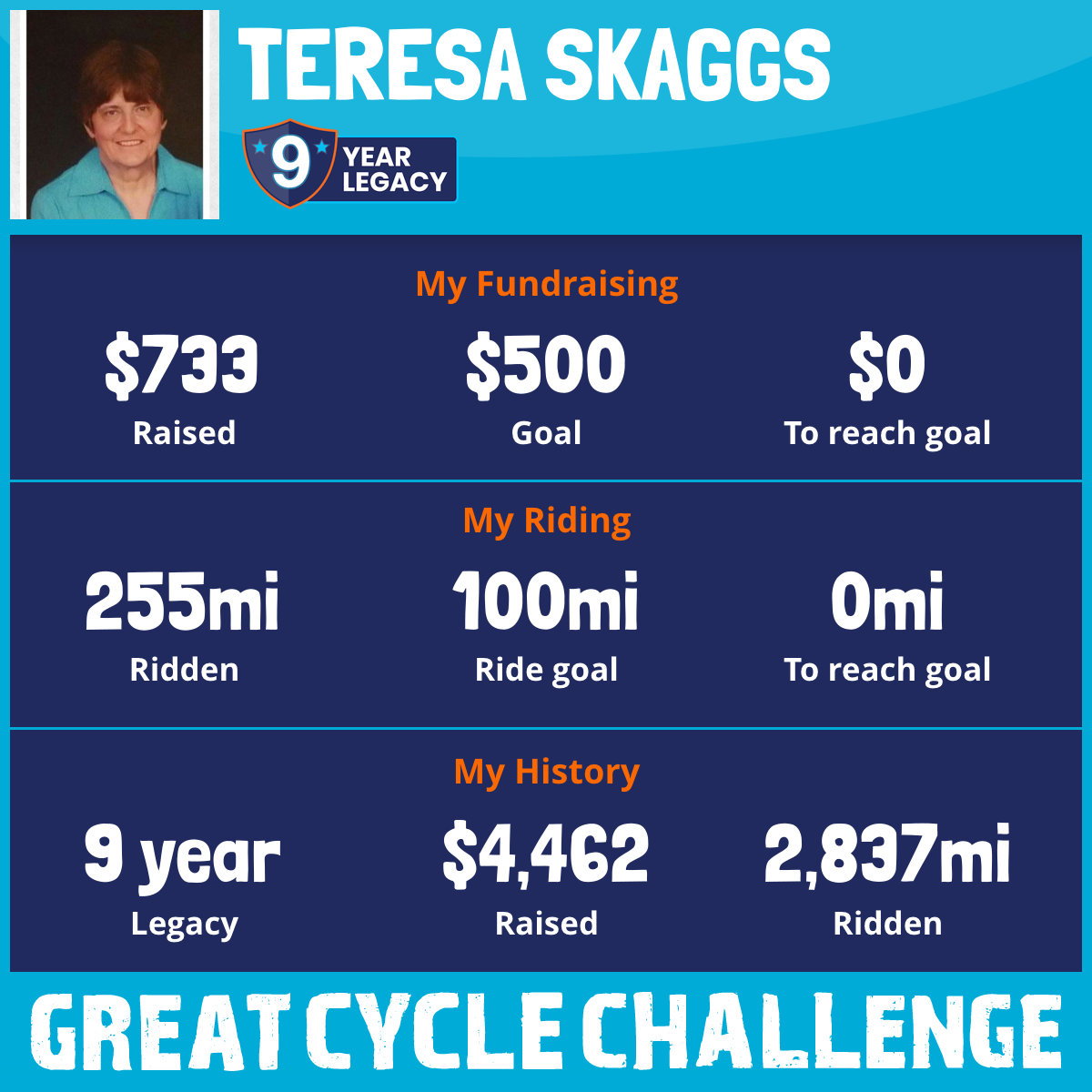 We will always remember you Charley. You will always be remembered as everyone's little superhero. You fought a hard fight, always had a great attitude and an outlook on life and you never gave up. I am also riding for my cousin Donna Wilson Nichols. My cousin Donna lost her fight to cancer on 6/14/2018. Im also riding for Nat and for my mom.
