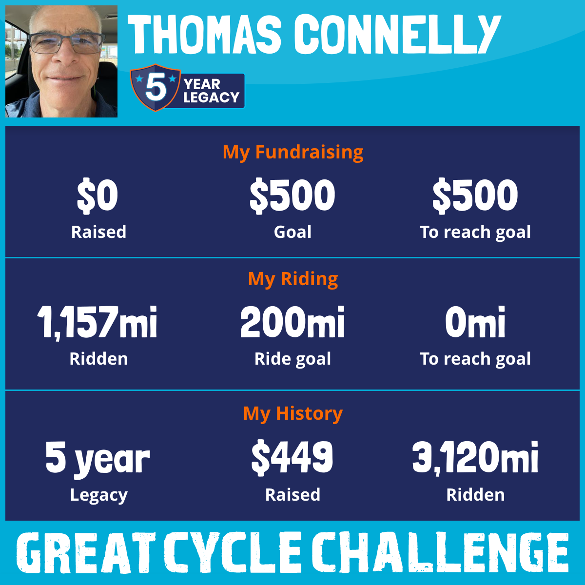 I am riding 200 mi in memory of Julia M Connelly. Please sponsor me and support my challenge to fight kids' cancer and save little lives.