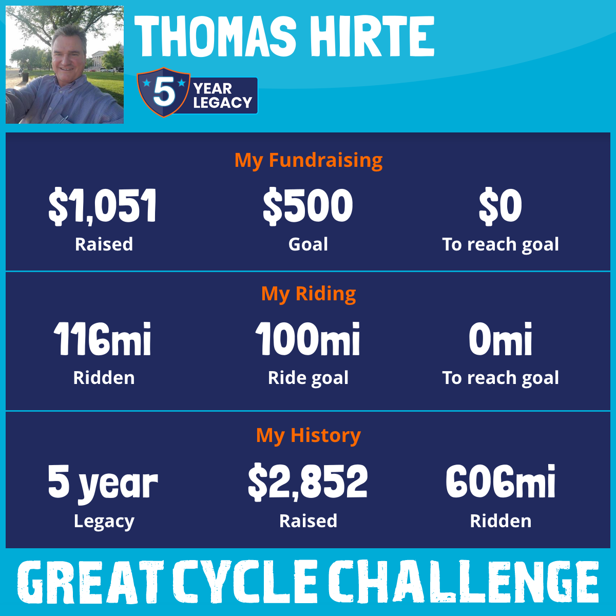 116 mi Ridden$1,051 Raised2025