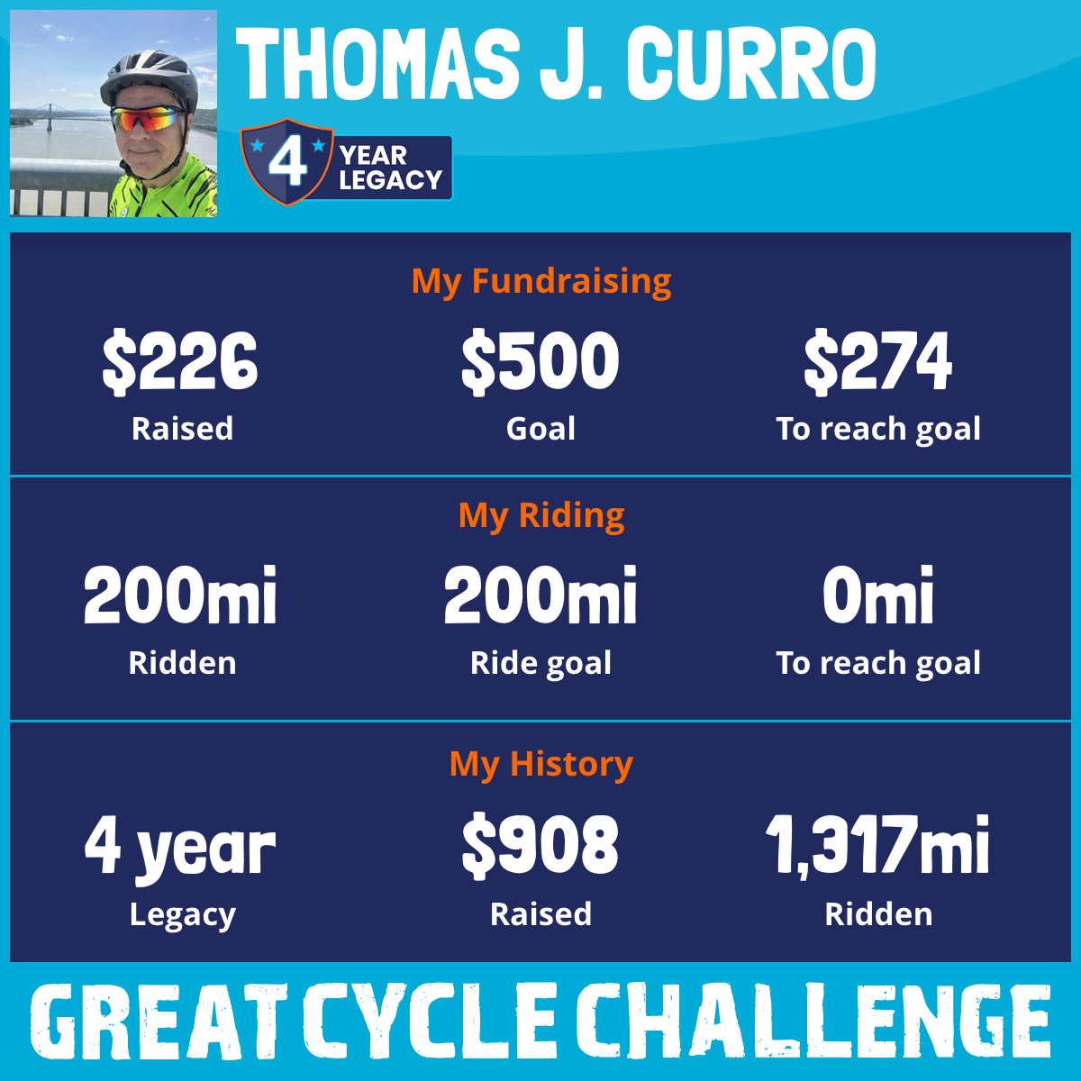 200 mi Ridden$226 Raised2025