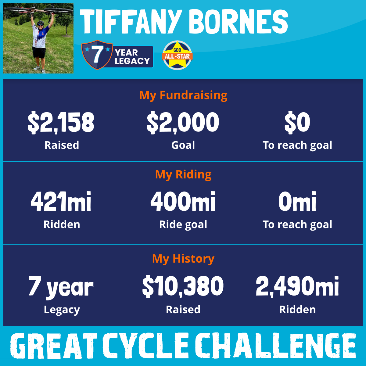 421 mi Ridden$2,158 Raised2025