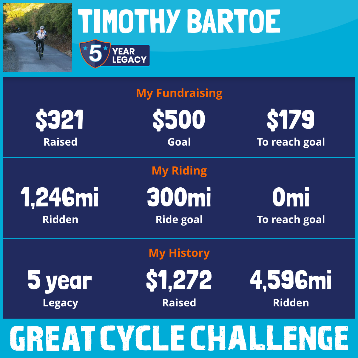 1,305 mi Ridden$124 Raised2023