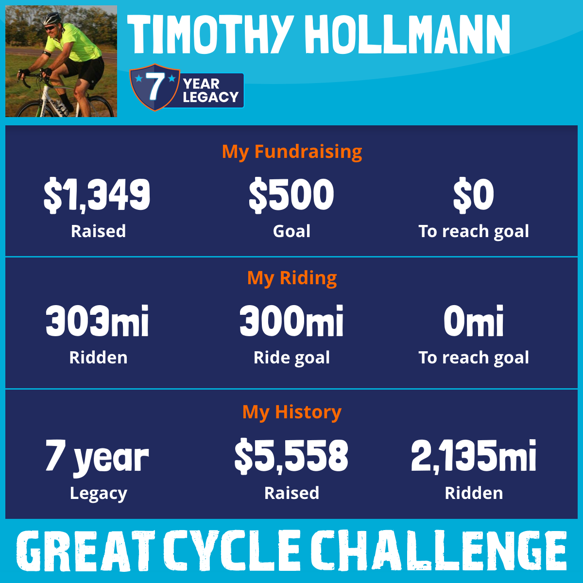 I am riding 300 mi in memory of Clayton Kotab. Please sponsor me and support my challenge to fight kids' cancer and save little lives.