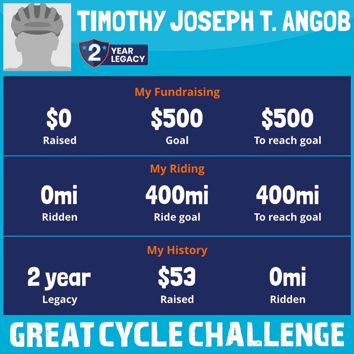 I've raised $0 My goal is $500 Donate Now