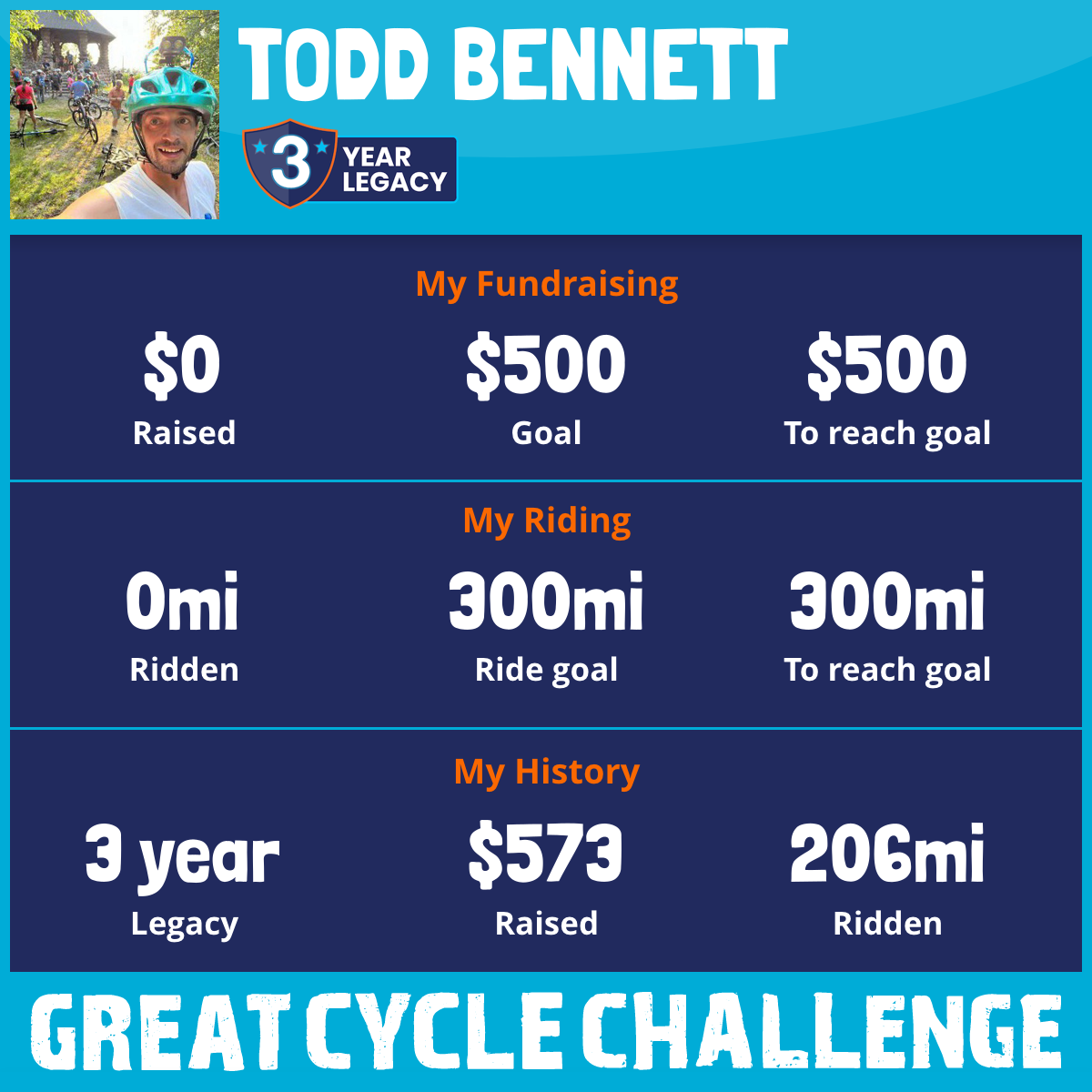 I am riding 300 mi in memory of My friends living with or who have passed from cancer. Please sponsor me and support my challenge to fight kids' cancer and save little lives.