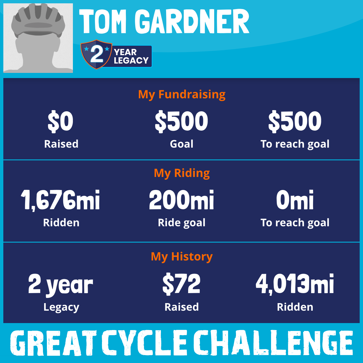 I am riding 200 mi for Cindi Gardner. Please sponsor me and support my challenge to fight kids' cancer and save little lives.