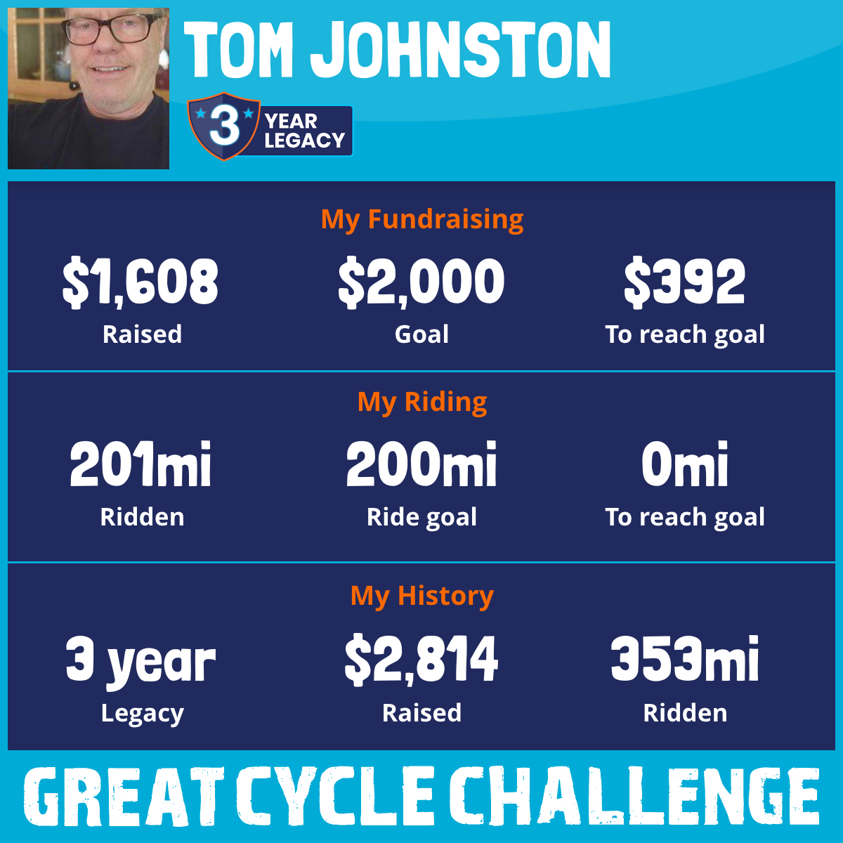 201 mi Ridden$1,608 Raised2025