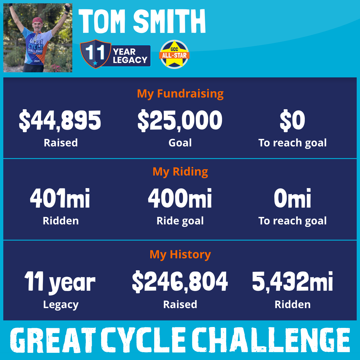 During this fundraiser in the last 10 years, I've ridden over 5,000 miles and, through your generous support, raised over $200,000.00. The overall fundraiser has raised over $80,000,000.00. Thanks in advance for your amazing support.